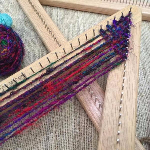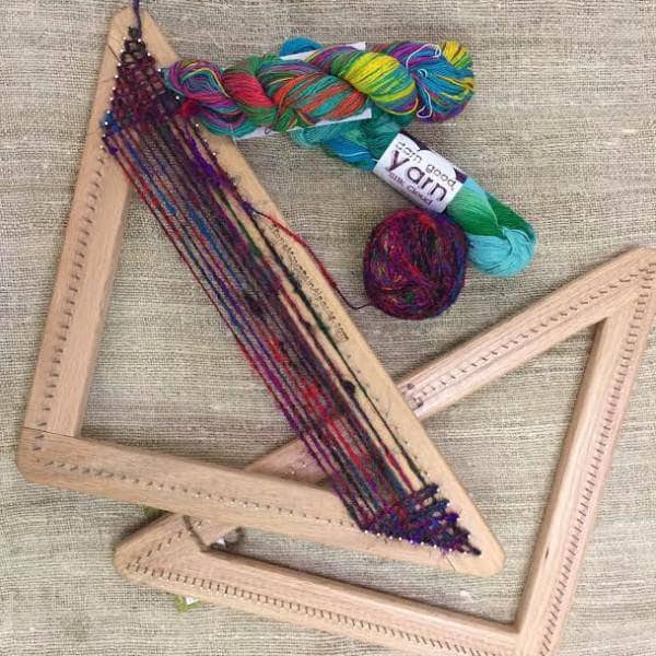 This triangle loom kit is perfect for weaving and warping yarn! Easy to work with, and made of either oak or maple. Start crafting immediately with this kit, as each one comes with 2 balls of our best-selling Premium Sari Silk Handspun Yarn.
