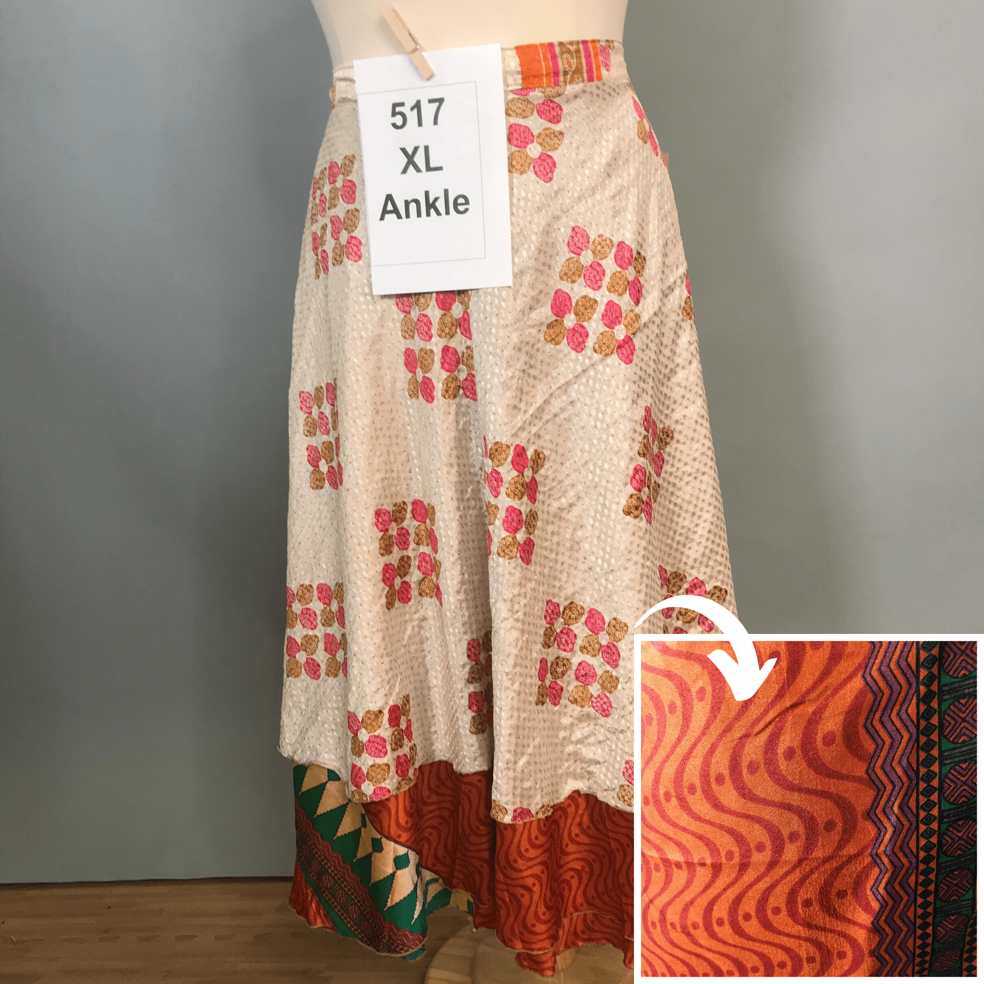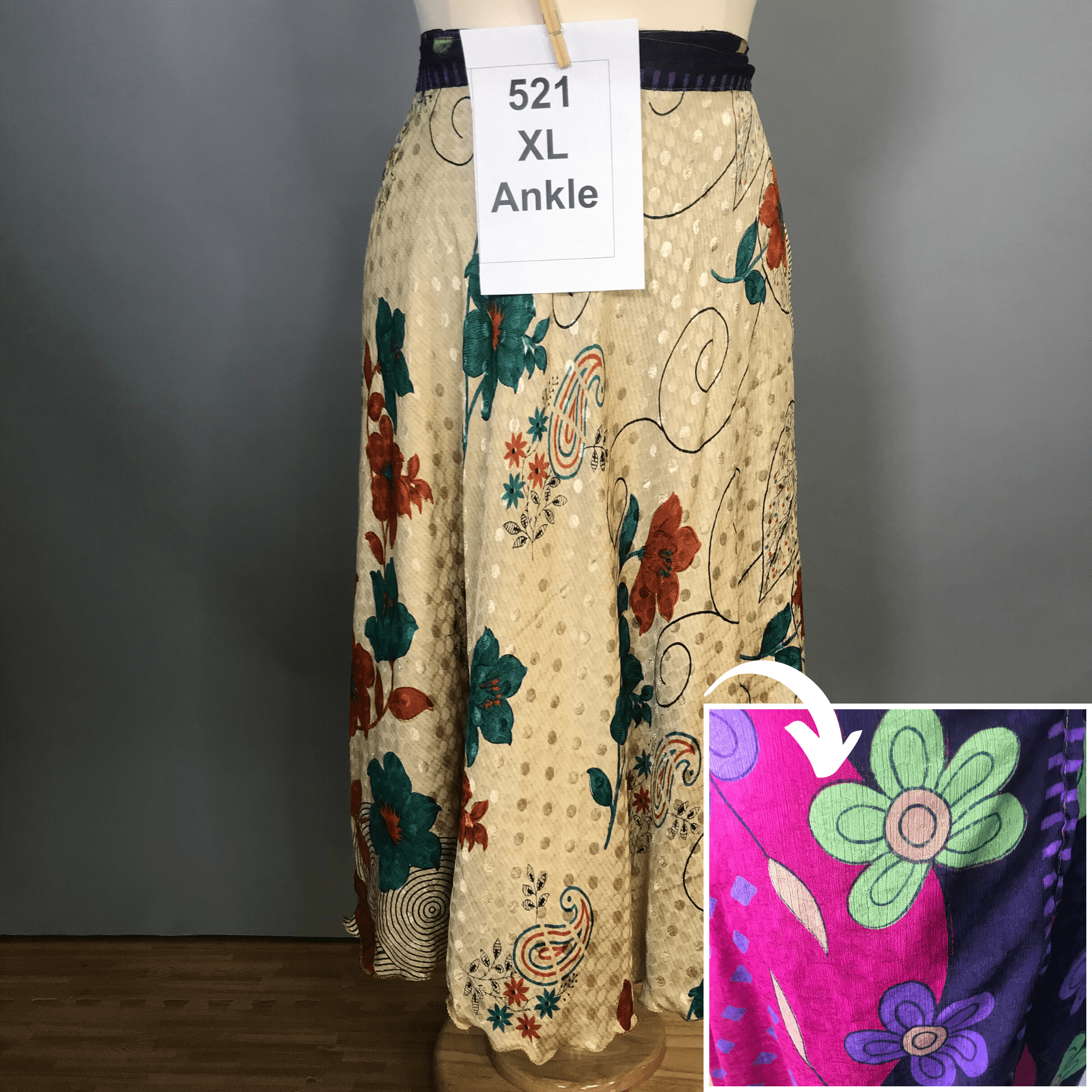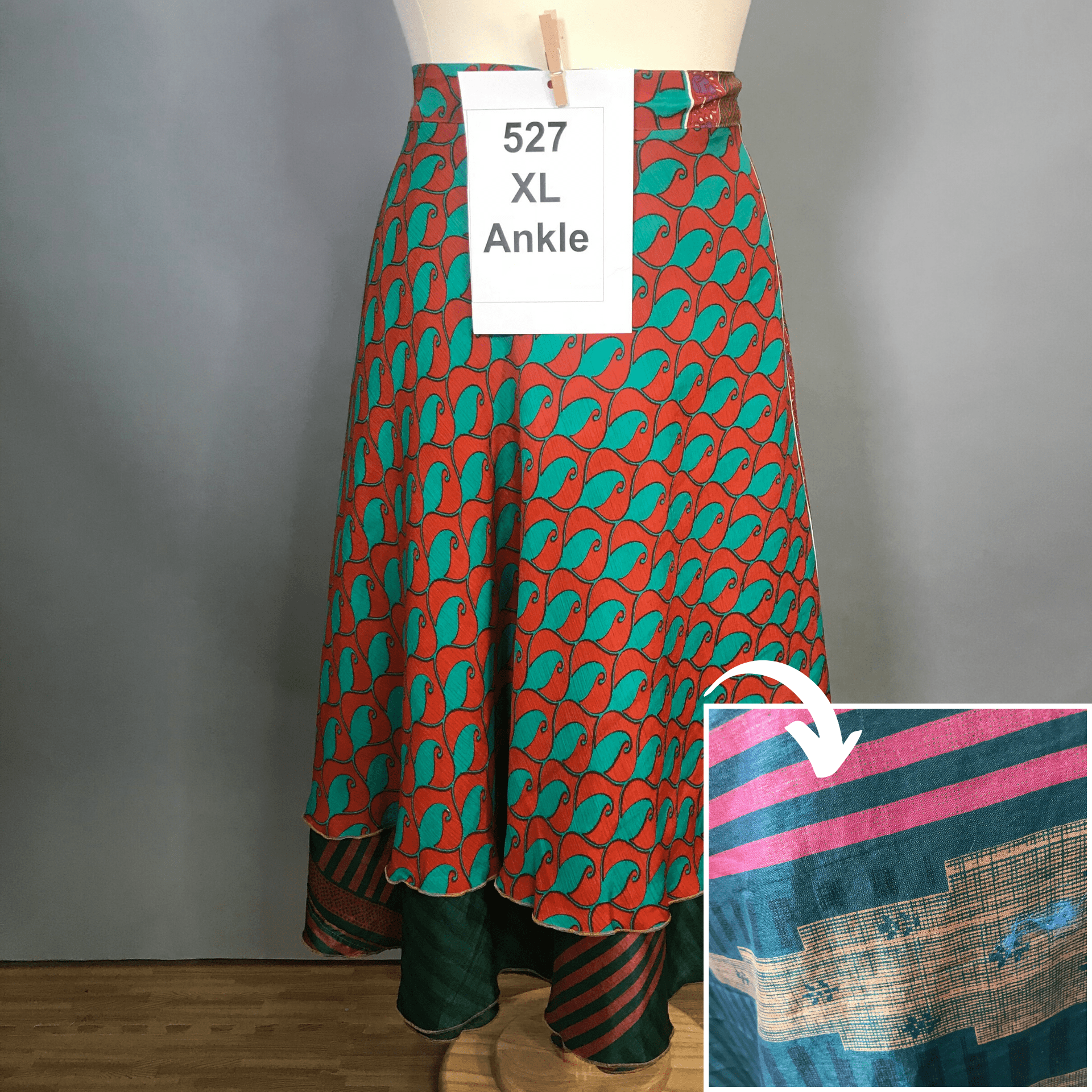 Each skirt is handmade by our co-ops in India out of recycled saris and turned into the beautifully finished skirt you see. With your help, these artisans are able to sustain year-round employment.