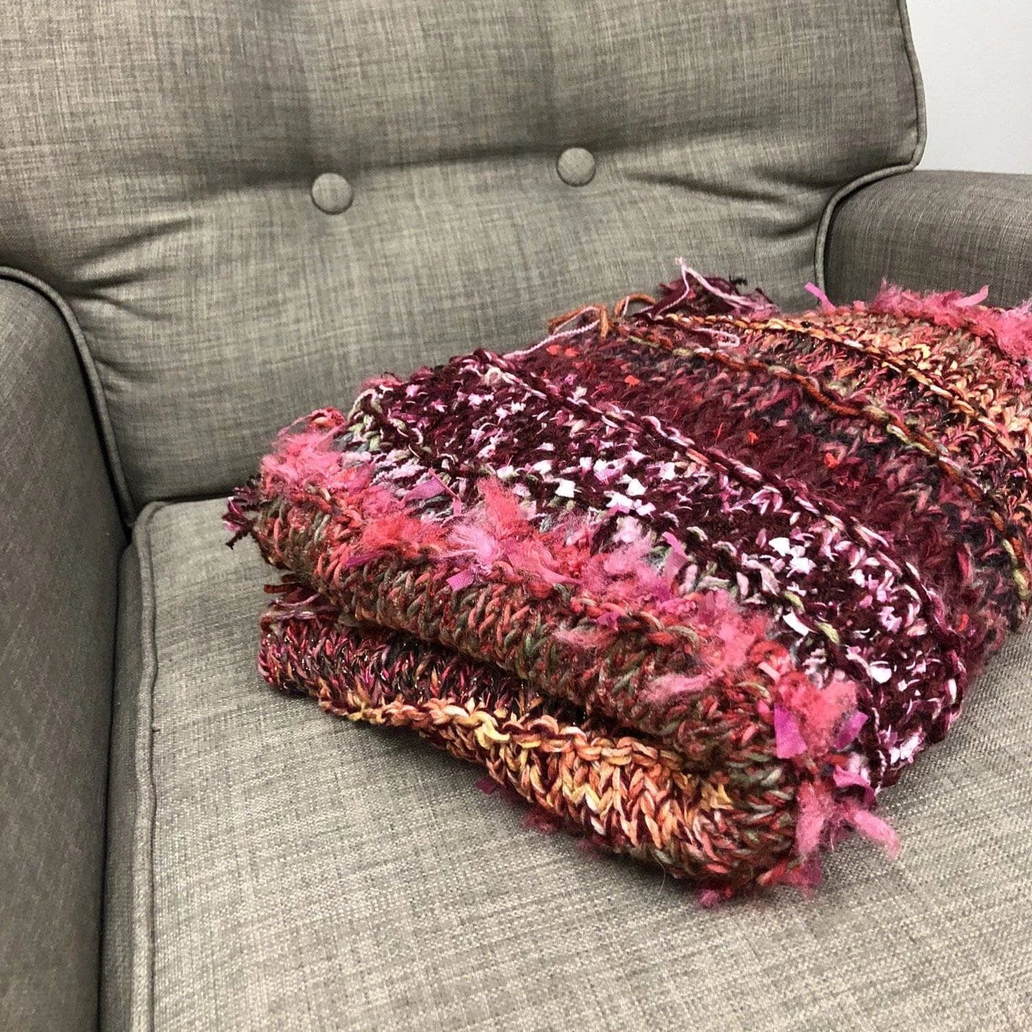 The Fusion Fringe Throw Knitting Kit includes 3 balls of Fusion Handtied Bulky Yarn and a complete, easy-to-follow knitting pattern! If you are a knitter who would like to make a unique and cozy accent throw for your living room, this is the kit for you!