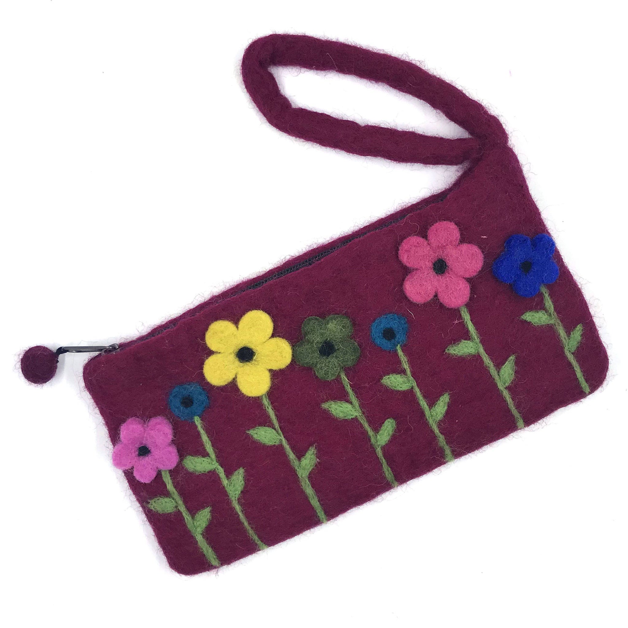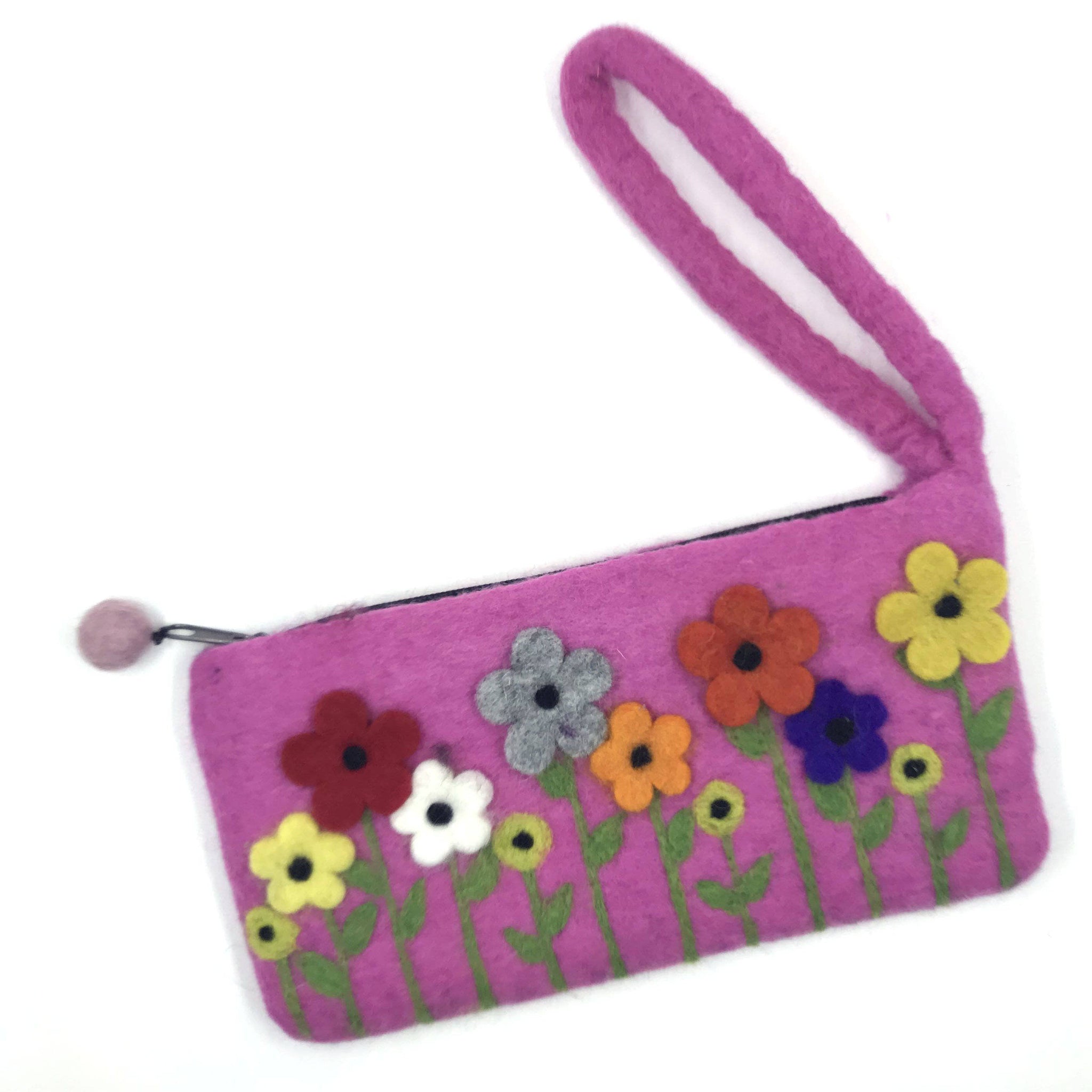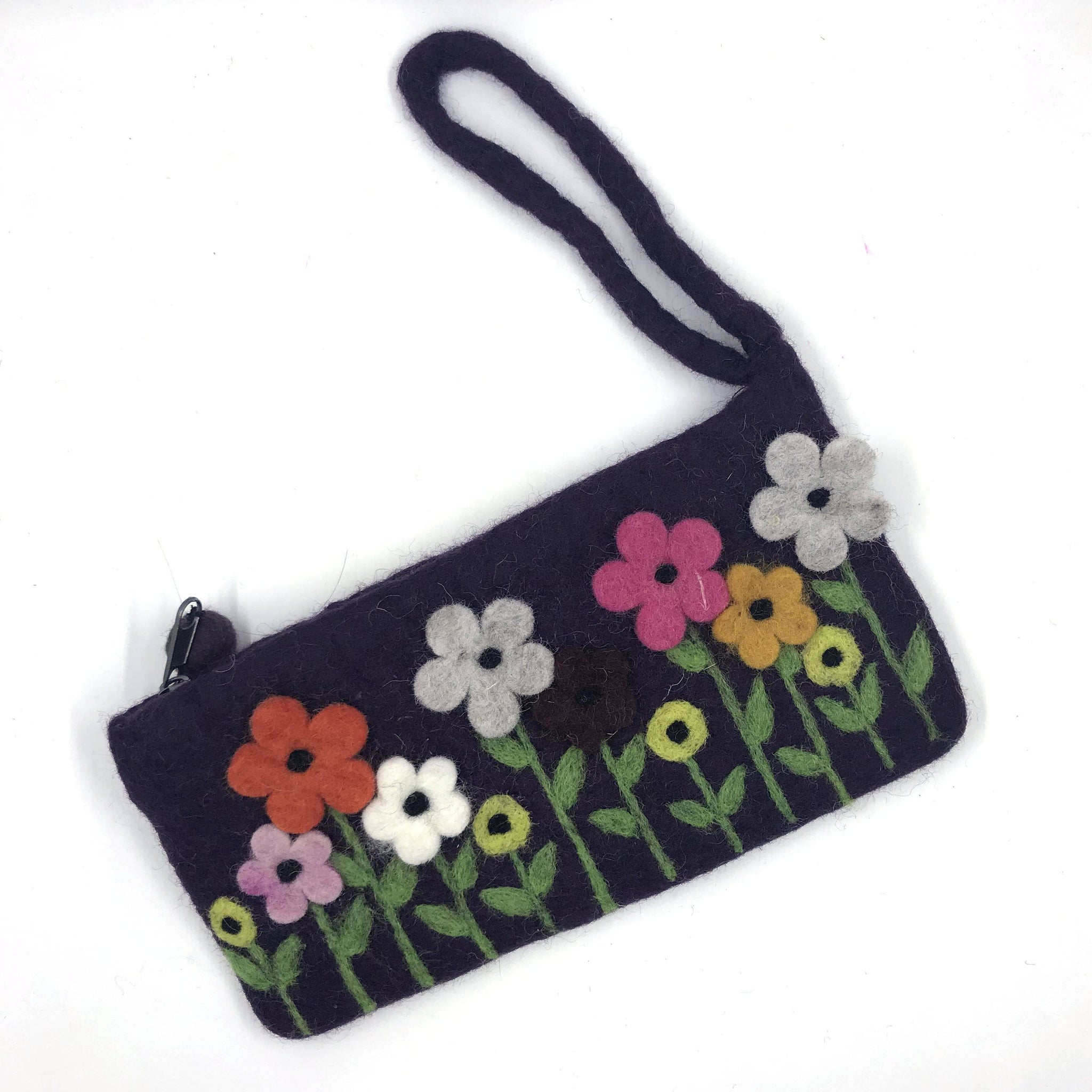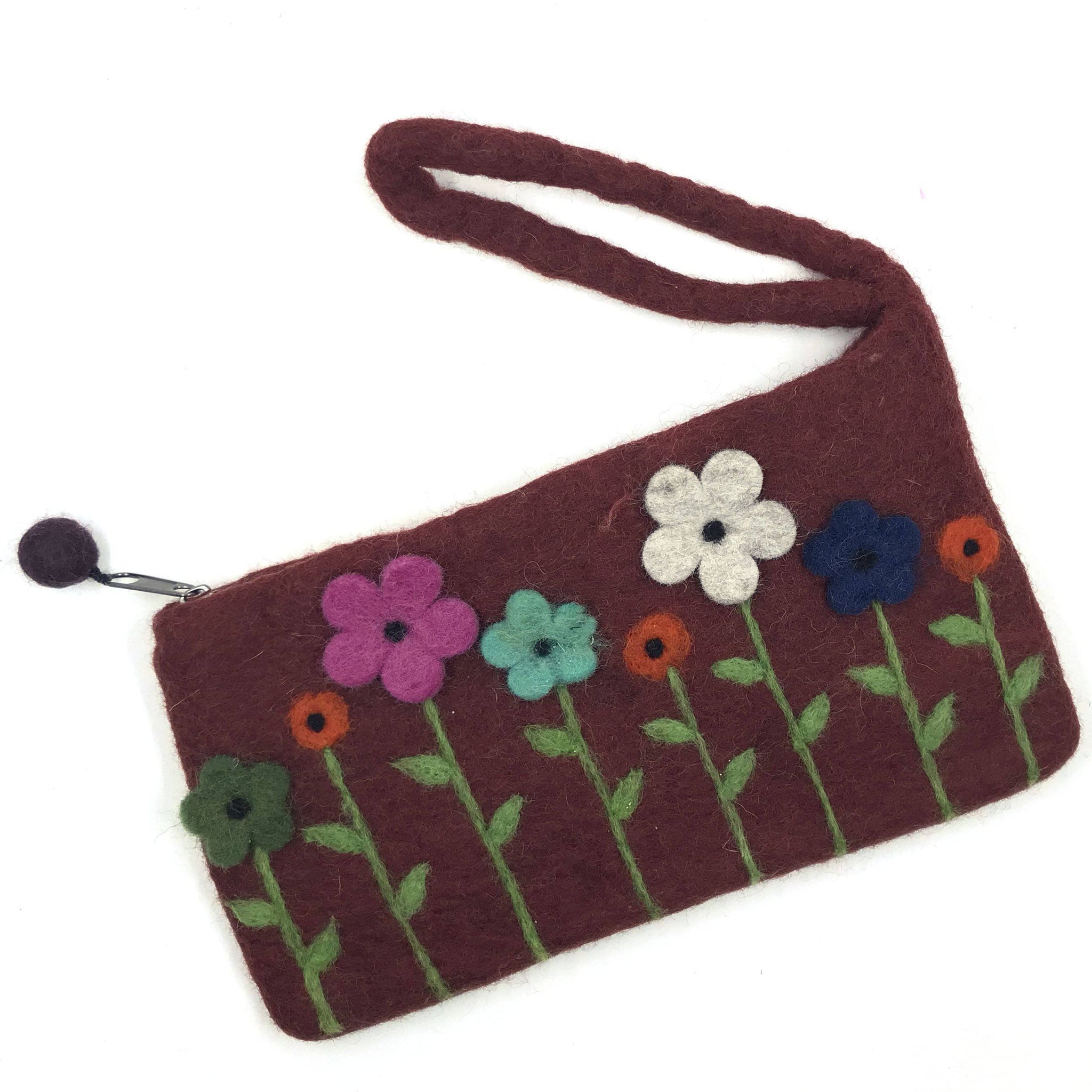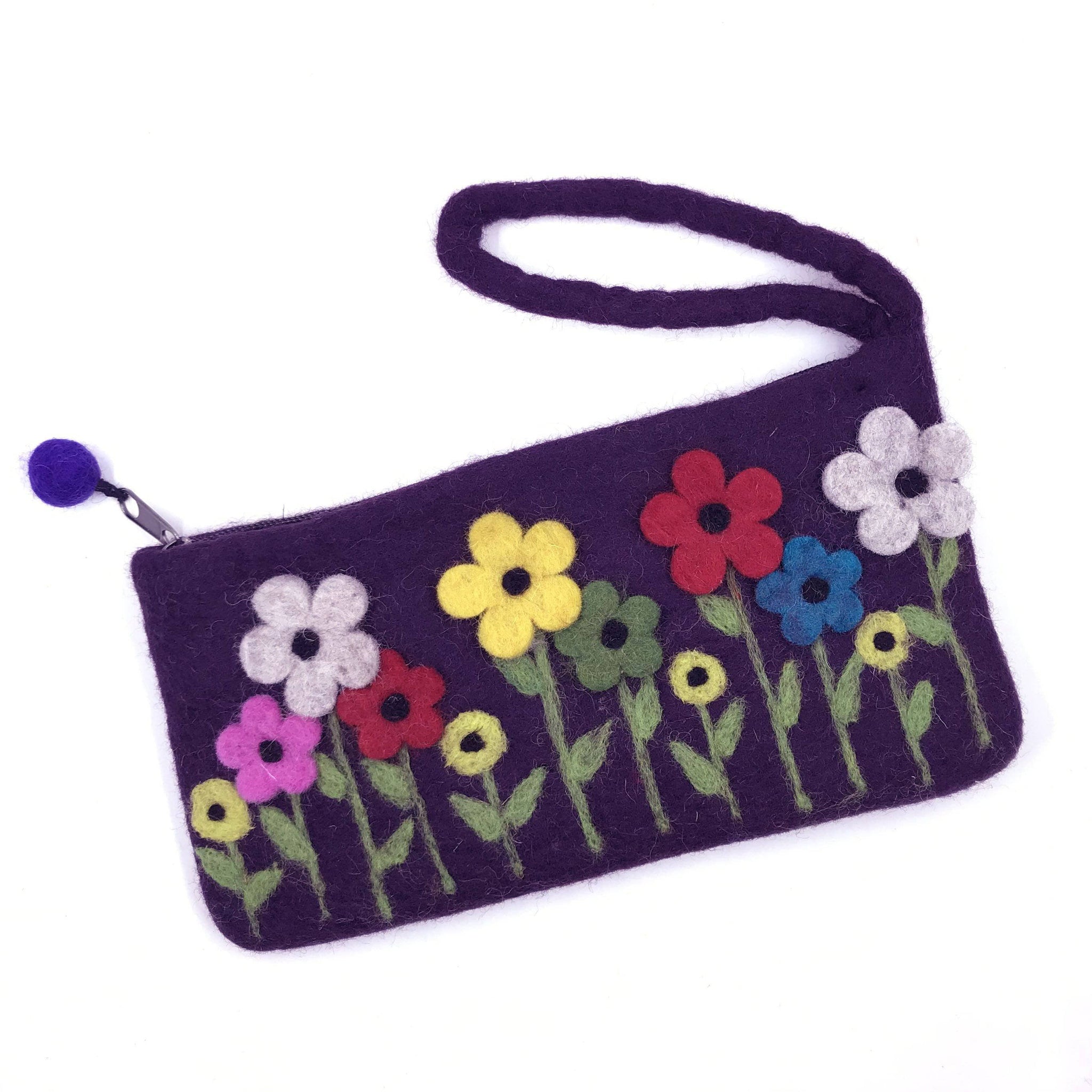 Our Handmade Felted Needle Bags are perfect for keeping all of your crafting necessities in one place. These silk lined, full zippered bags are handmade with love in Nepal, and decorated with a fun, floral pattern, available in a wide variety of colors.