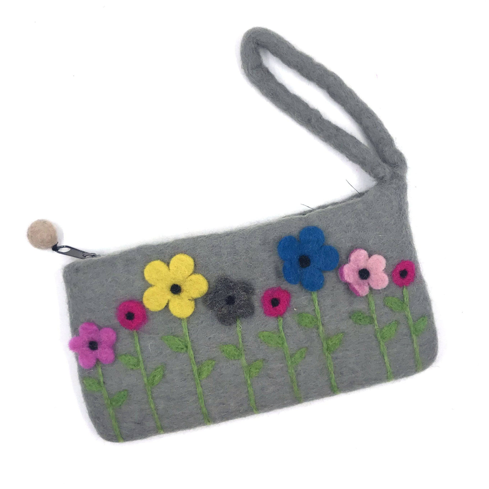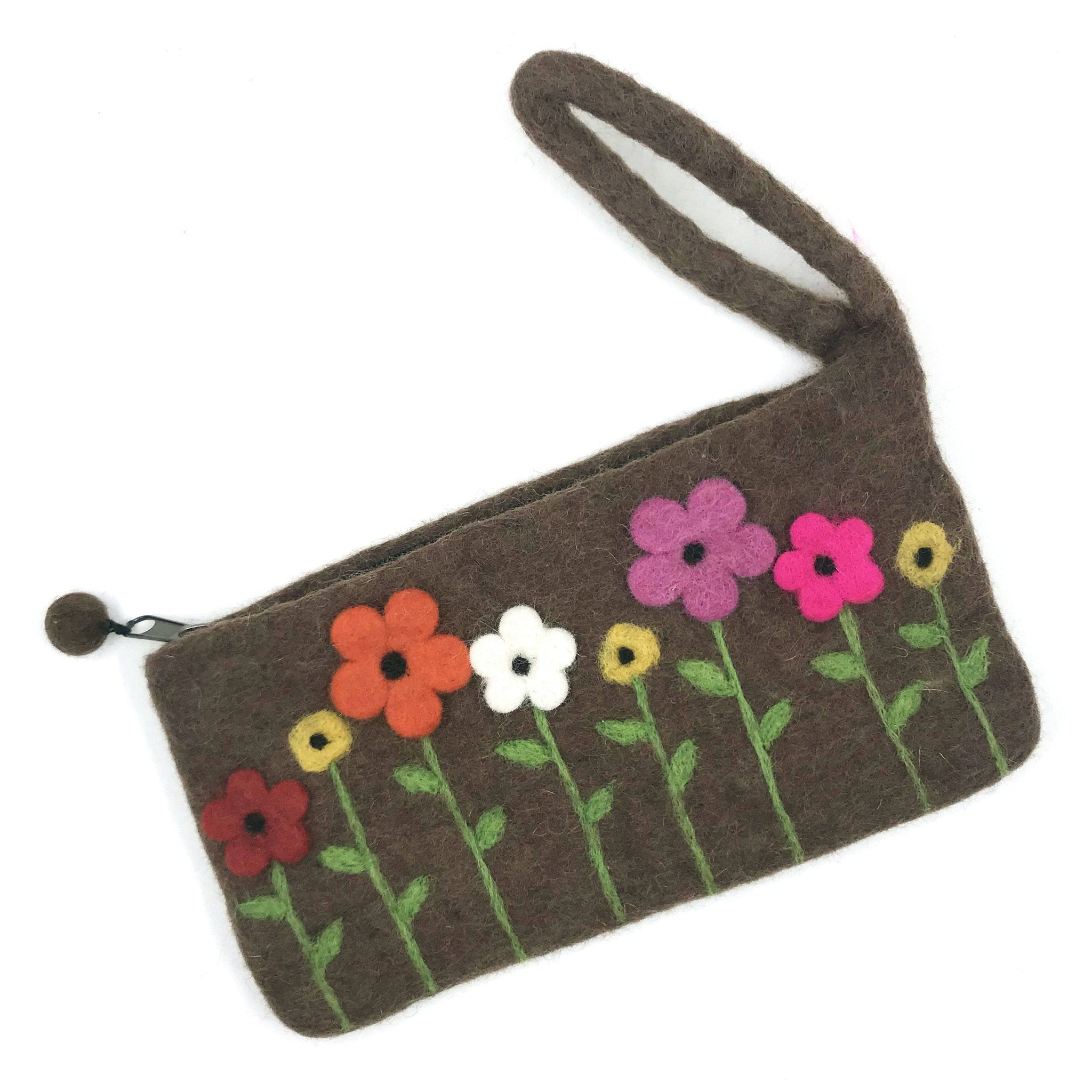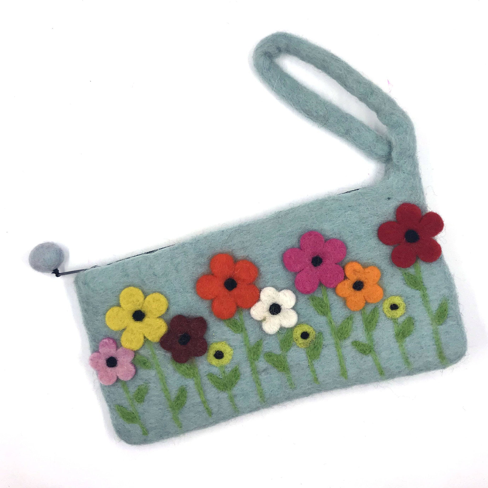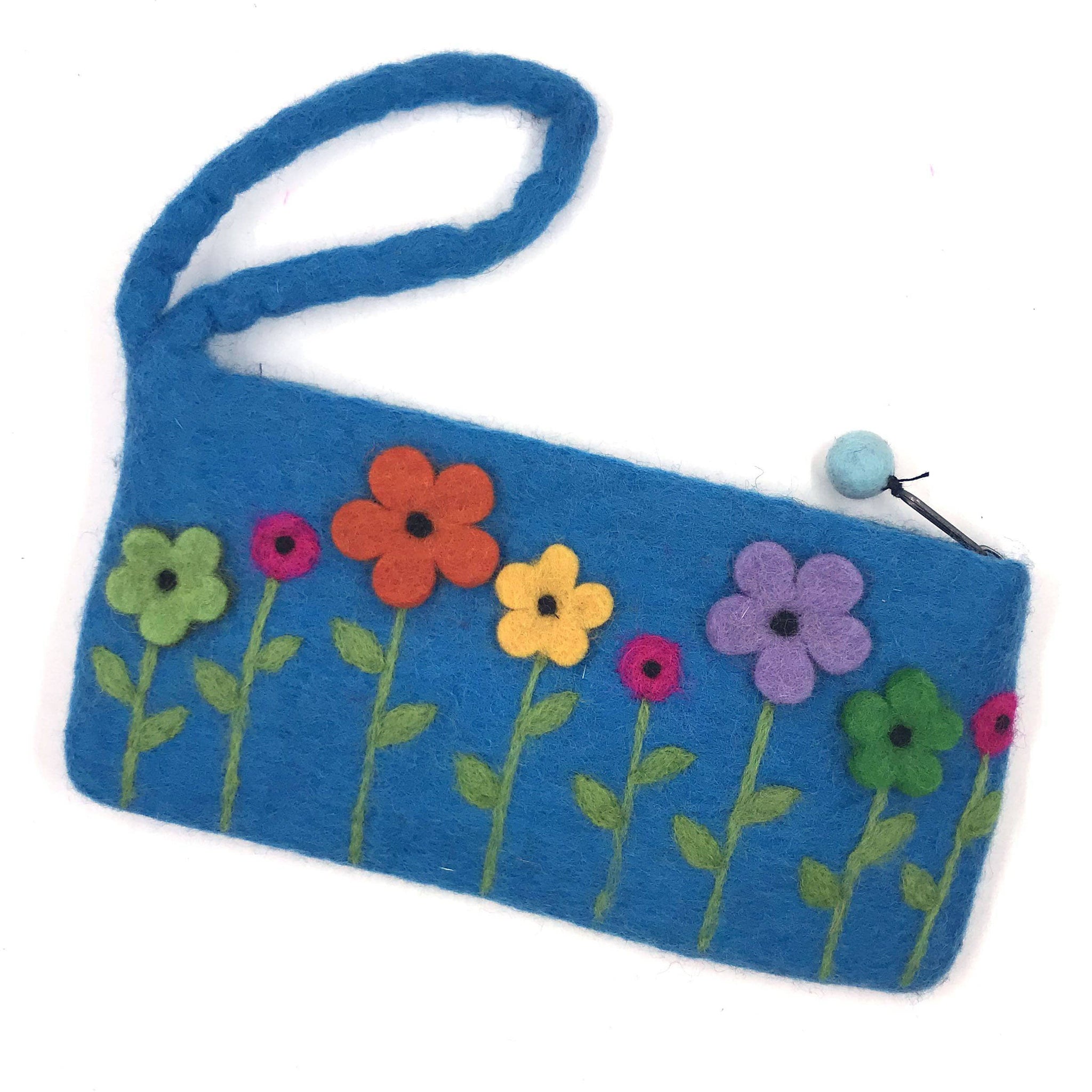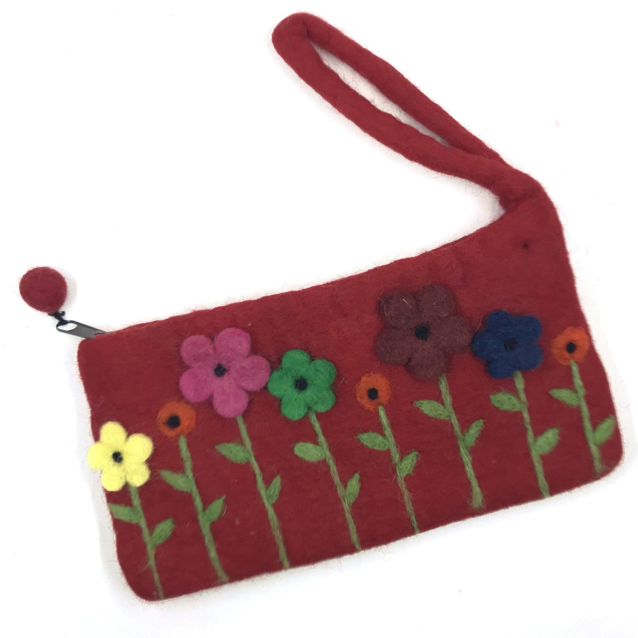 Our Handmade Felted Needle Bags are perfect for keeping all of your crafting necessities in one place. These silk lined, full zippered bags are handmade with love in Nepal, and decorated with a fun, floral pattern, available in a wide variety of colors.
