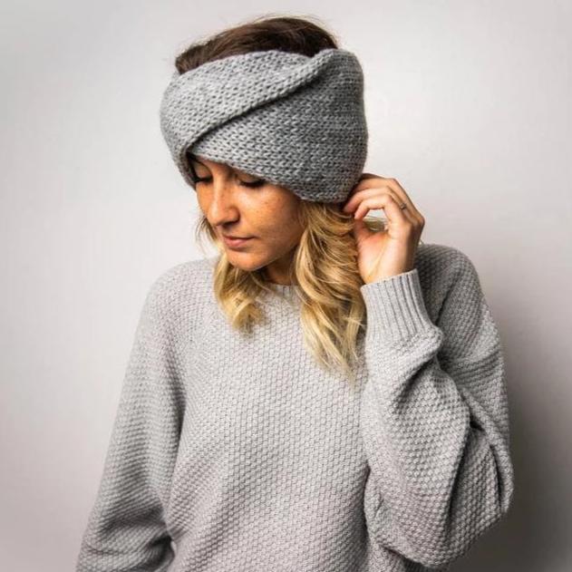 Knit Headband - Dark grey headband made with 80% acrylic/ 20% wool yarn. Machine wash and dry.