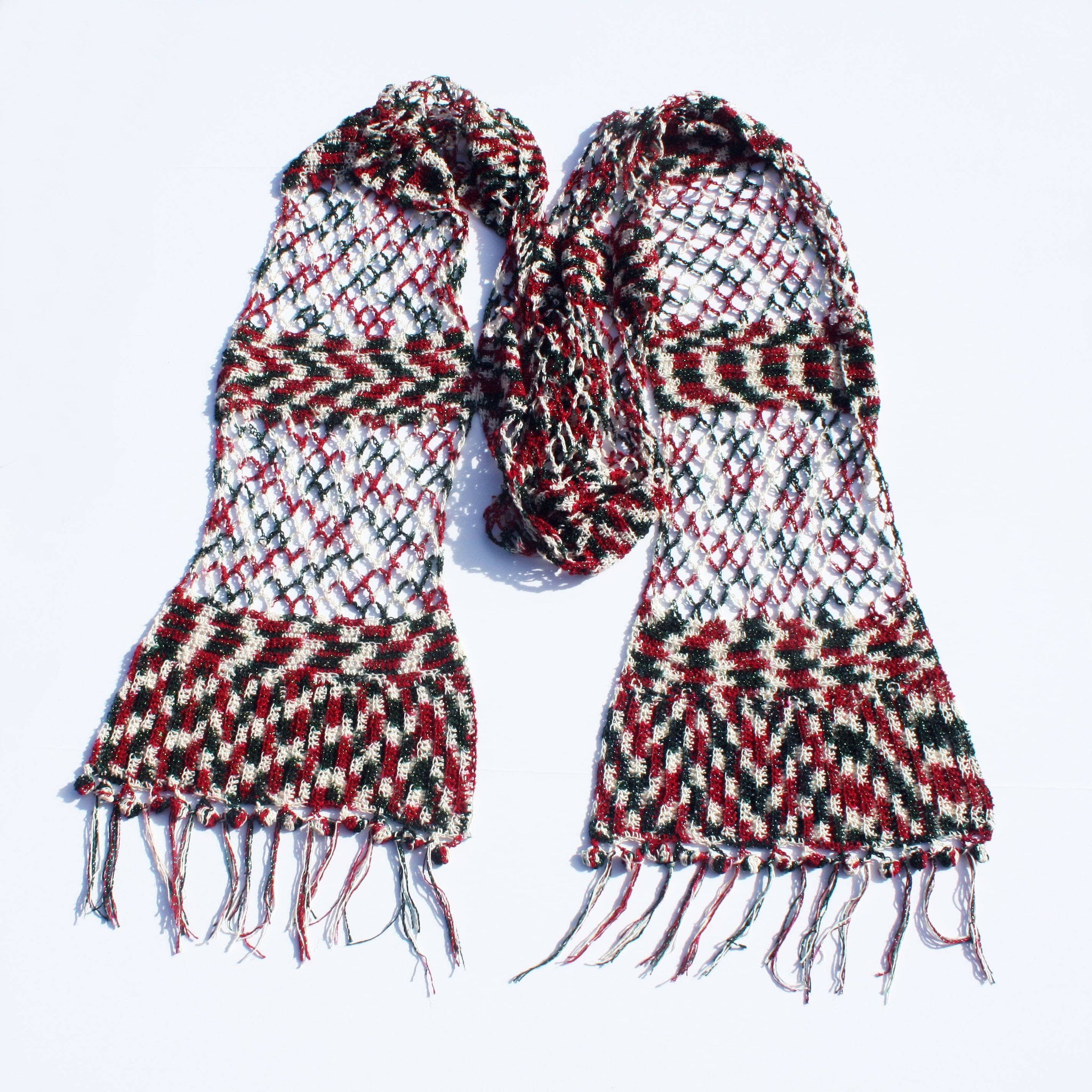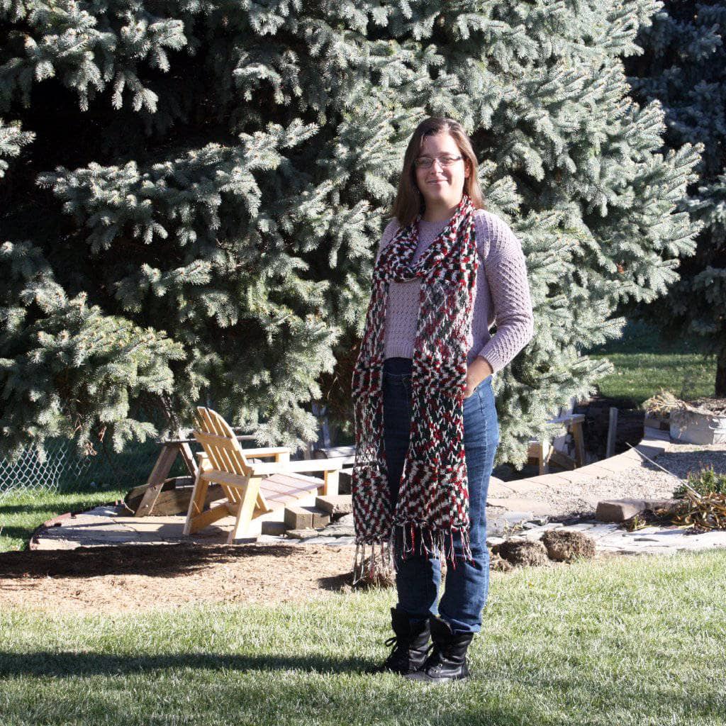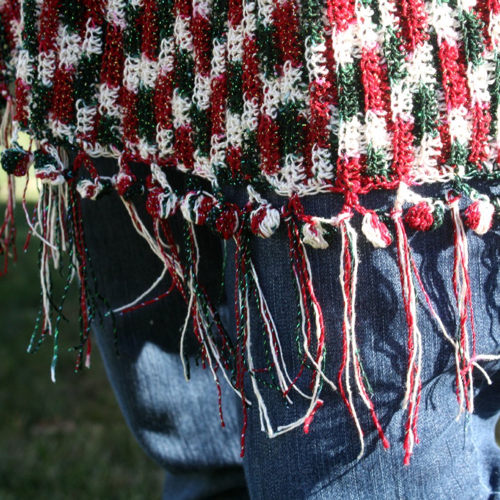 This pattern creates a classic scarf with excellent drape and a fun bobble edging. Wear this long scarf a variety of ways to add holiday vibes to any outfit.