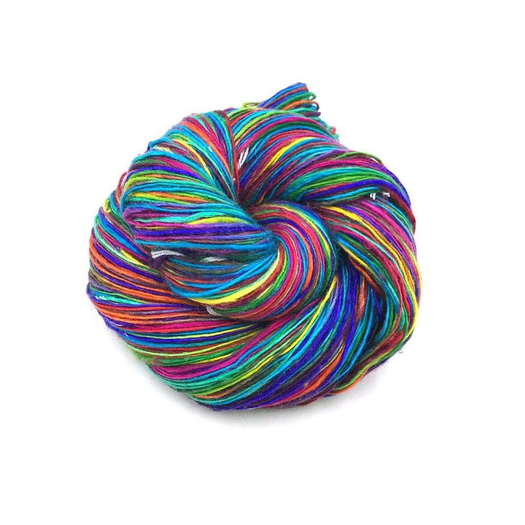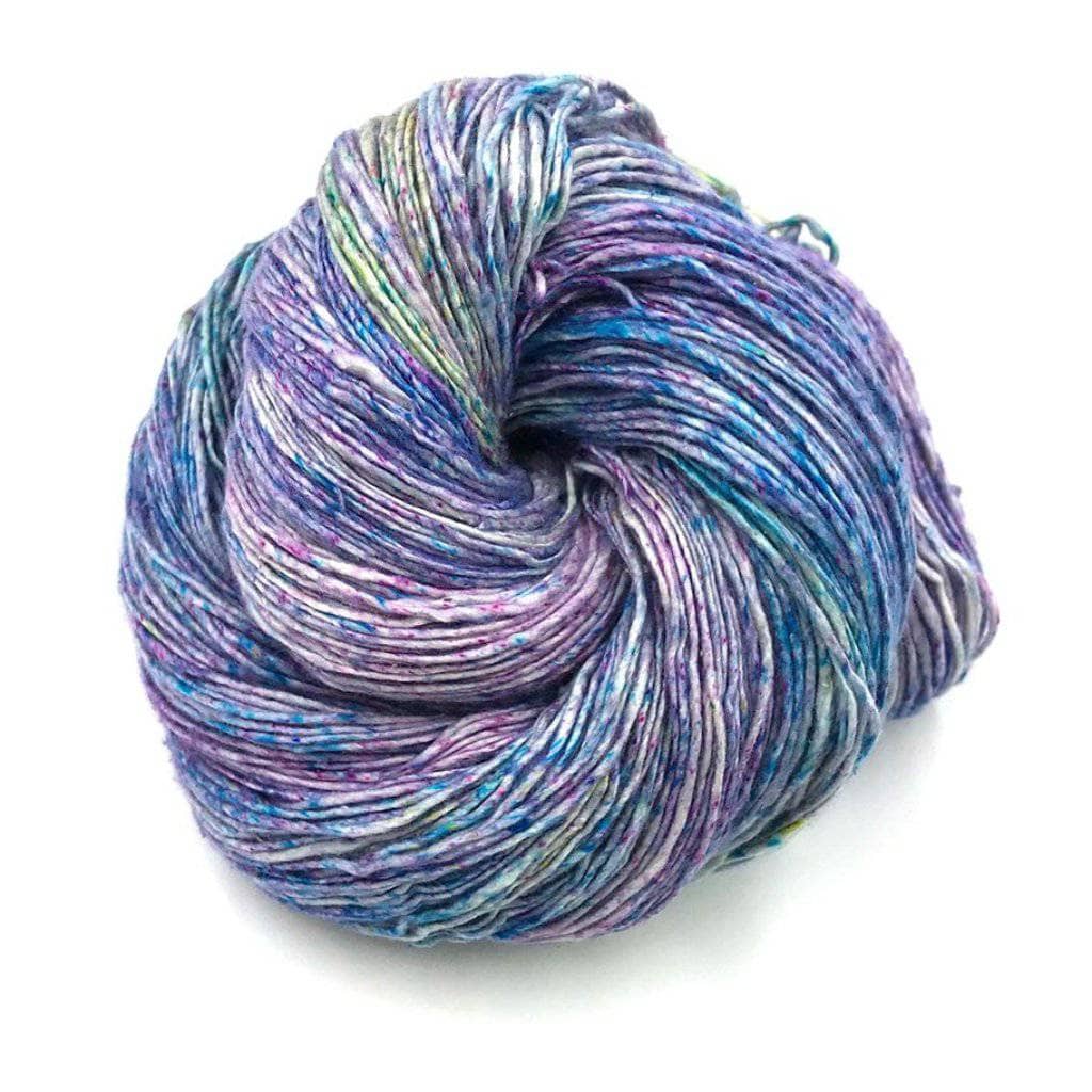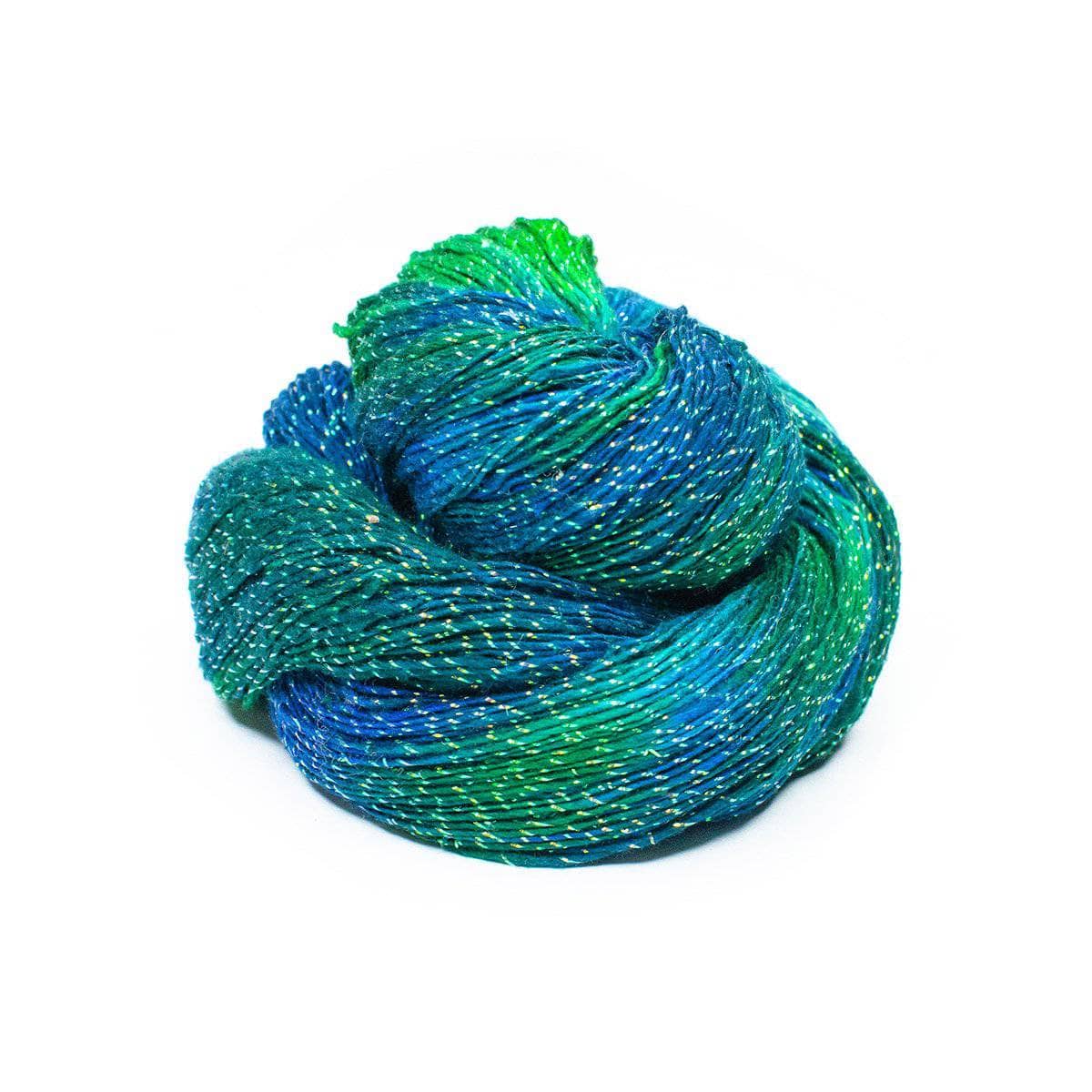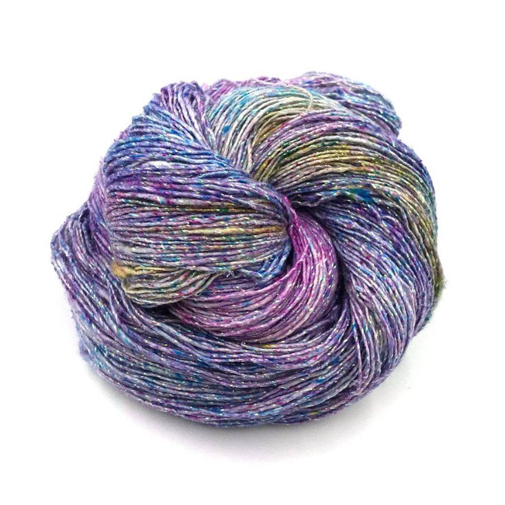 This Recycled silk yarn is full of playful spirals of color, creating a balance between fun and delicate! Soft and light, this yarn is perfect for any lightweight project on your to-do list.
