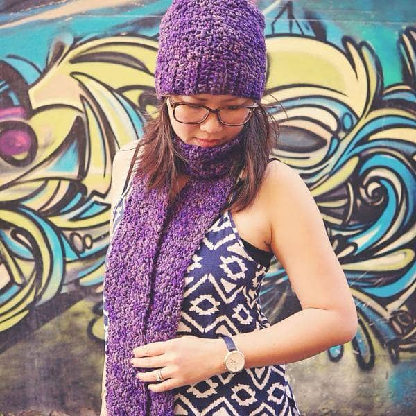 • Load image into Gallery viewer, Lavender Fields Crochet Beanie & Scarf Kit