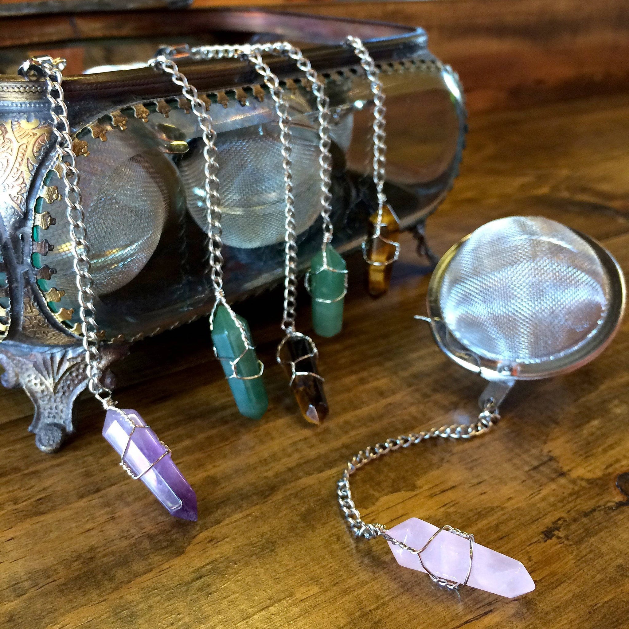 Stay in tune with your intentions with these healing Dream Catcher & Crystal Loose Leaf Tea Infusers. Brew your favorite tea easily and effectively, whether you're on the go, or if you're enjoying your delicious cup of tea at home. This infuser can be easily stored and cleaned.