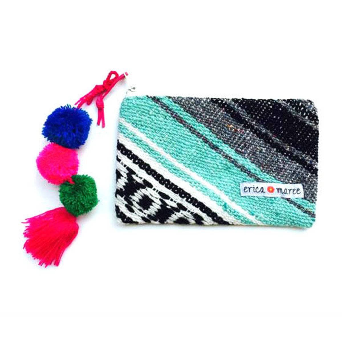 These Mexican Serape Makeup Bag with Pom Poms are each handmade, making these one-of-a-kinds! Perfect for carrying your necessities during the day and night. Each features a 3 tier pom poms and wide tooth off-white zipper closure.