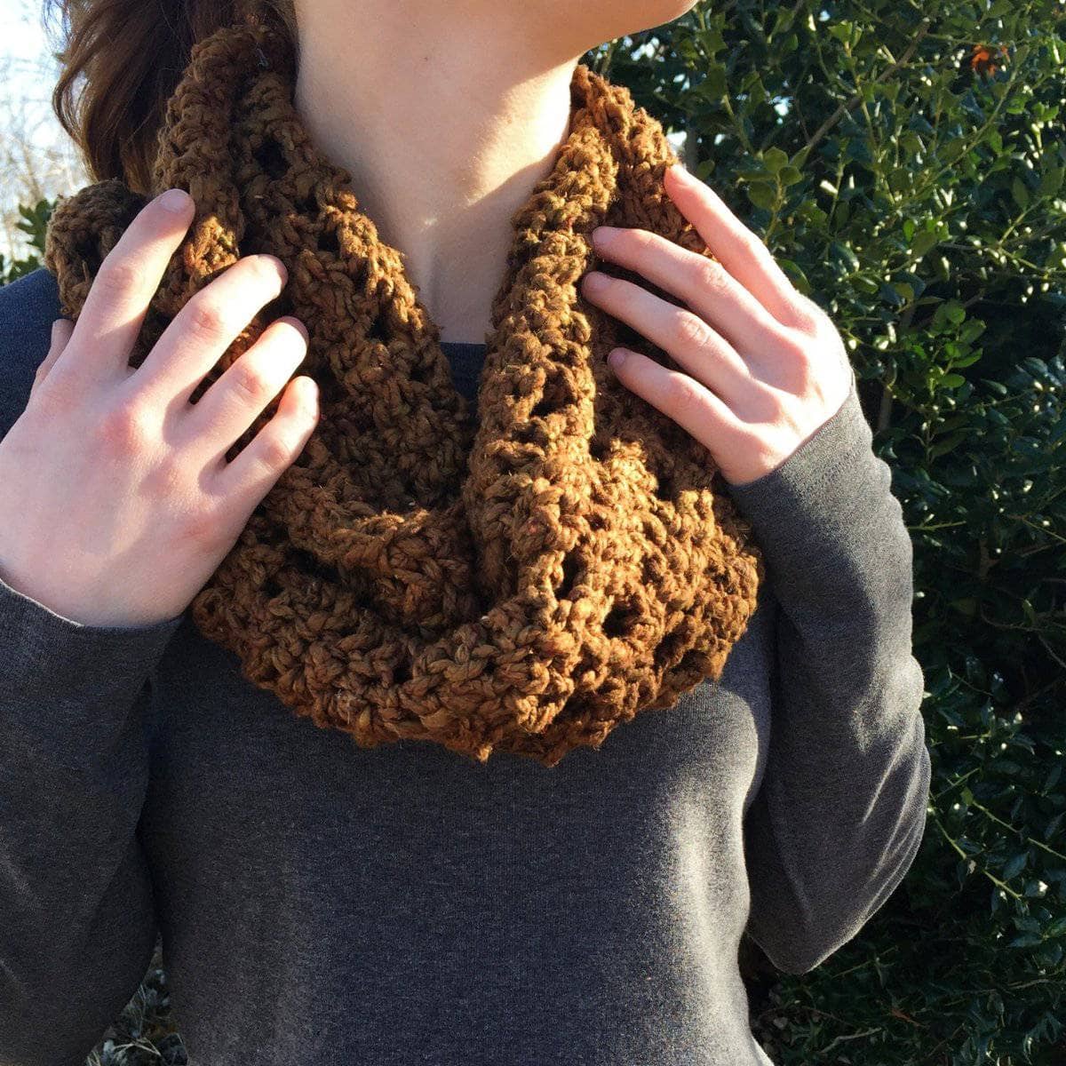This easy chunky crochet cowl will keep you cozy all season long! The kit includes Darn Good yarn's gorgeous speckled tweed recycled silk yarn.