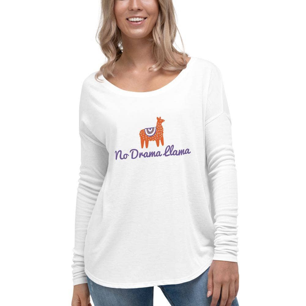 Our No Drama Llama Boatneck Long Sleeve is a lightweight, adorable long sleeve that can be worn year-round. A blend of polyester & viscose, makes it easy to take care of. The long sleeve comes in black, athletic heather & white.