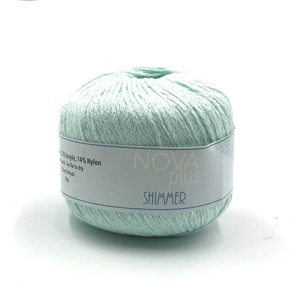 This chain plied Nova Plus Shimmer Yarn will glimmer with each and every turn of your needle or hook! Ethereal colorways and its light weight makes this perfect for lace detailing, shawls, and tank tops.