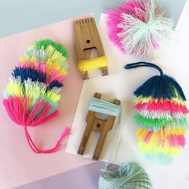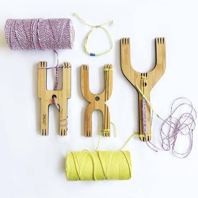 This all-in-one, patent-pending tool can make pom poms, tassels, friendship bracelets, cords and small weaving's and also convert into a slingshot.