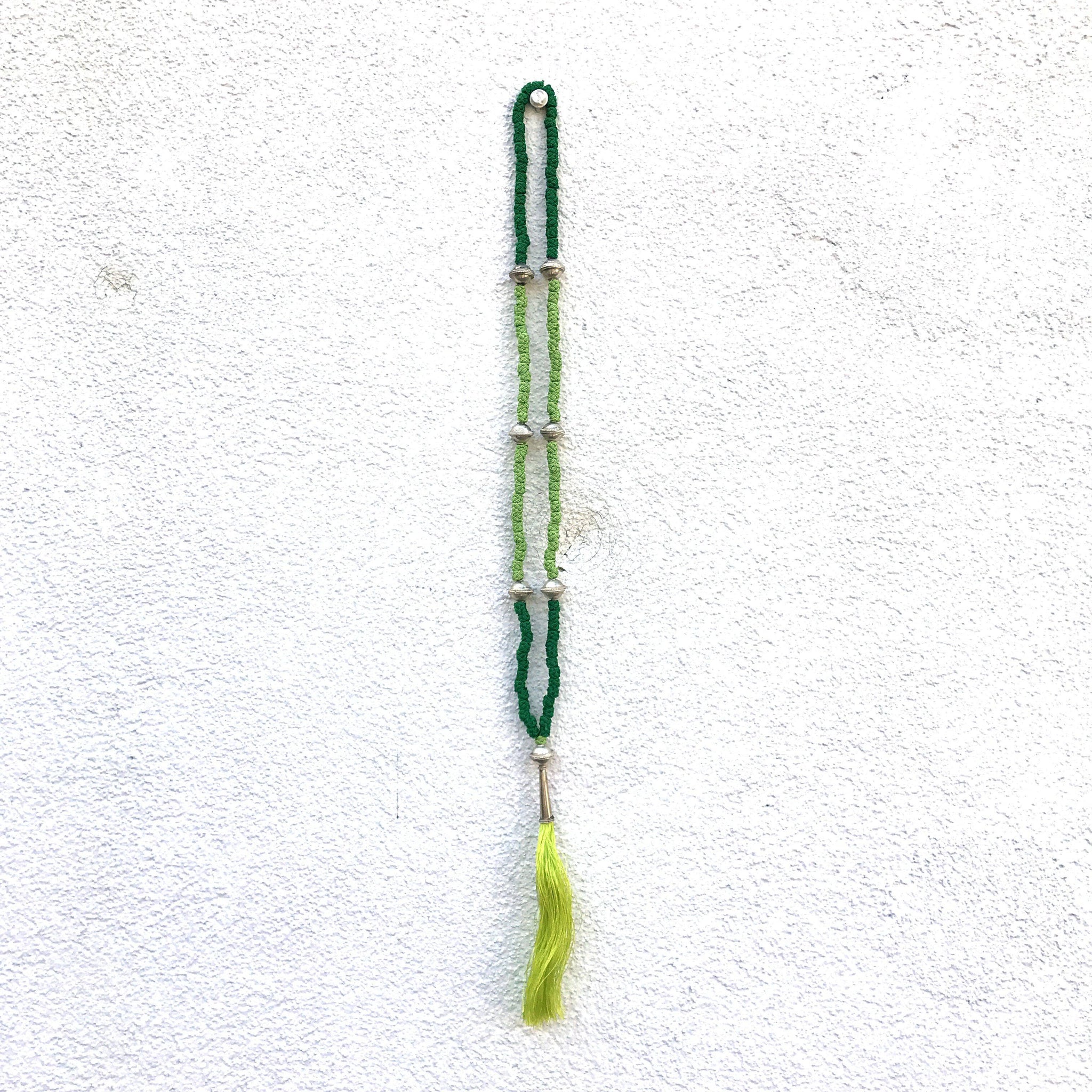 Color: Each piece is unique, with different combinations of beads in this color scheme with an accompanying tassel that's specific to the piece.