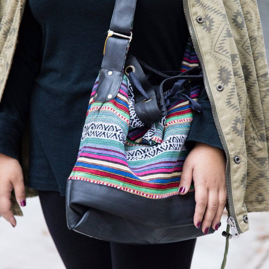 Subtle pops of color and small, handstitched intricate patterns are inlaid with classic black makes to make this bag perfect for every season. Beach bag, pool bag, diaper bag, purse, or just something to carry your current craft project with you - this bag is your go to!