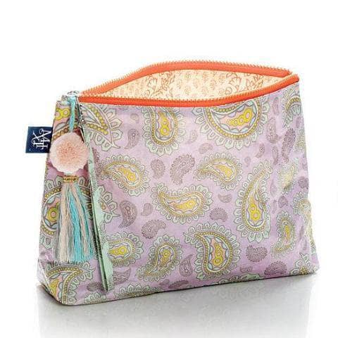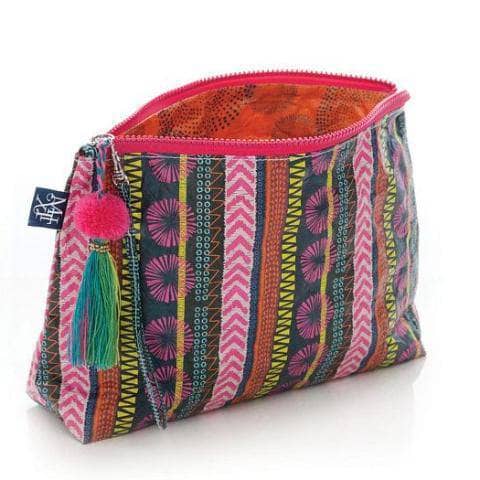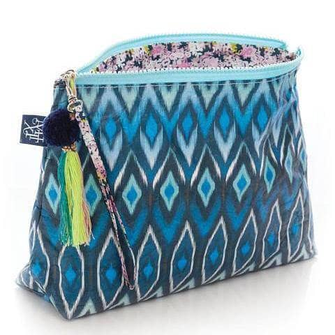 Get a makeup bag that's as beautiful on the inside and out as you are! This versatile pouch brightens any mood with an exterior of bold shades of blue and a contrasting interior featuring delicate pink and teal flowers. A fun, pom pom tassel zipper will keep your necessities in one place.