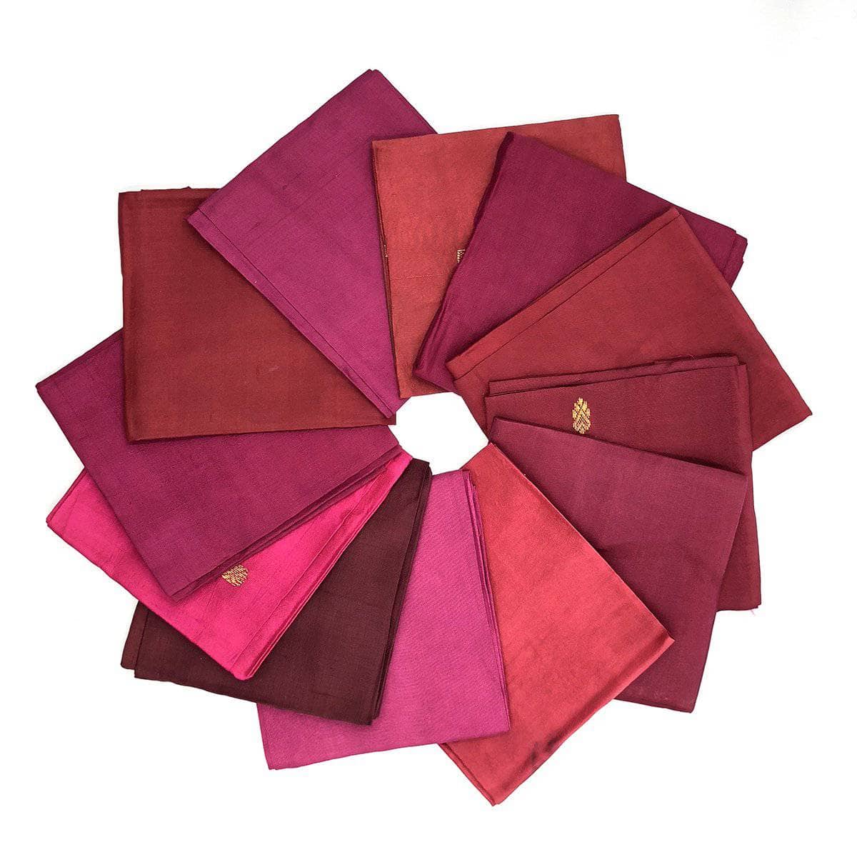 The perfect fat quarters for your next quilting or patchwork project. These quilting squares are handmade from Reclaimed Sari Silk, by the artisans in our co-ops in India.