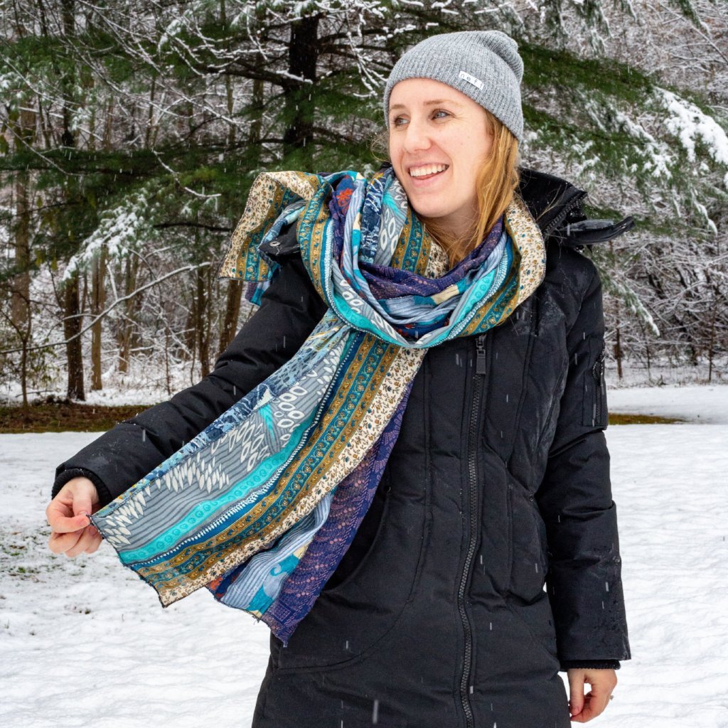Dress boldly and colorfully this fall with one of our sari silk medley scarves! Handmade with 7 strips of bright sari silk, each one of these scarves is a unique mystery! If you have favorite colors be sure to let us know in the notes section at checkout!