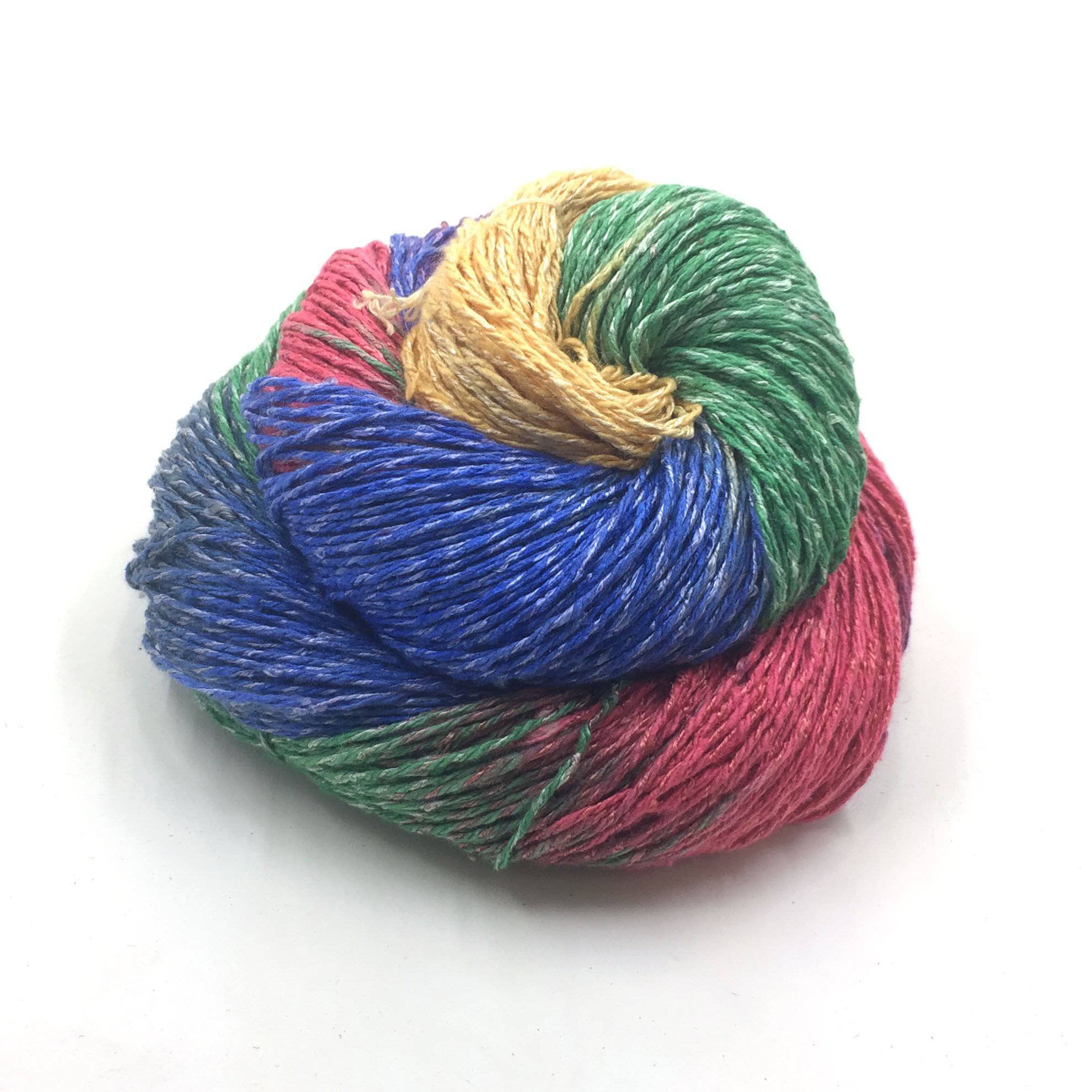 This Sport Weight Recycled Silk Yarn comes to you with bright bits of light in every color on the spectrum. Once you have worked with it, you will be hooked - if it’s not the super yummy texture, it will be the rainbow of colors and the “wonder what comes next” experience that will keep you working.
