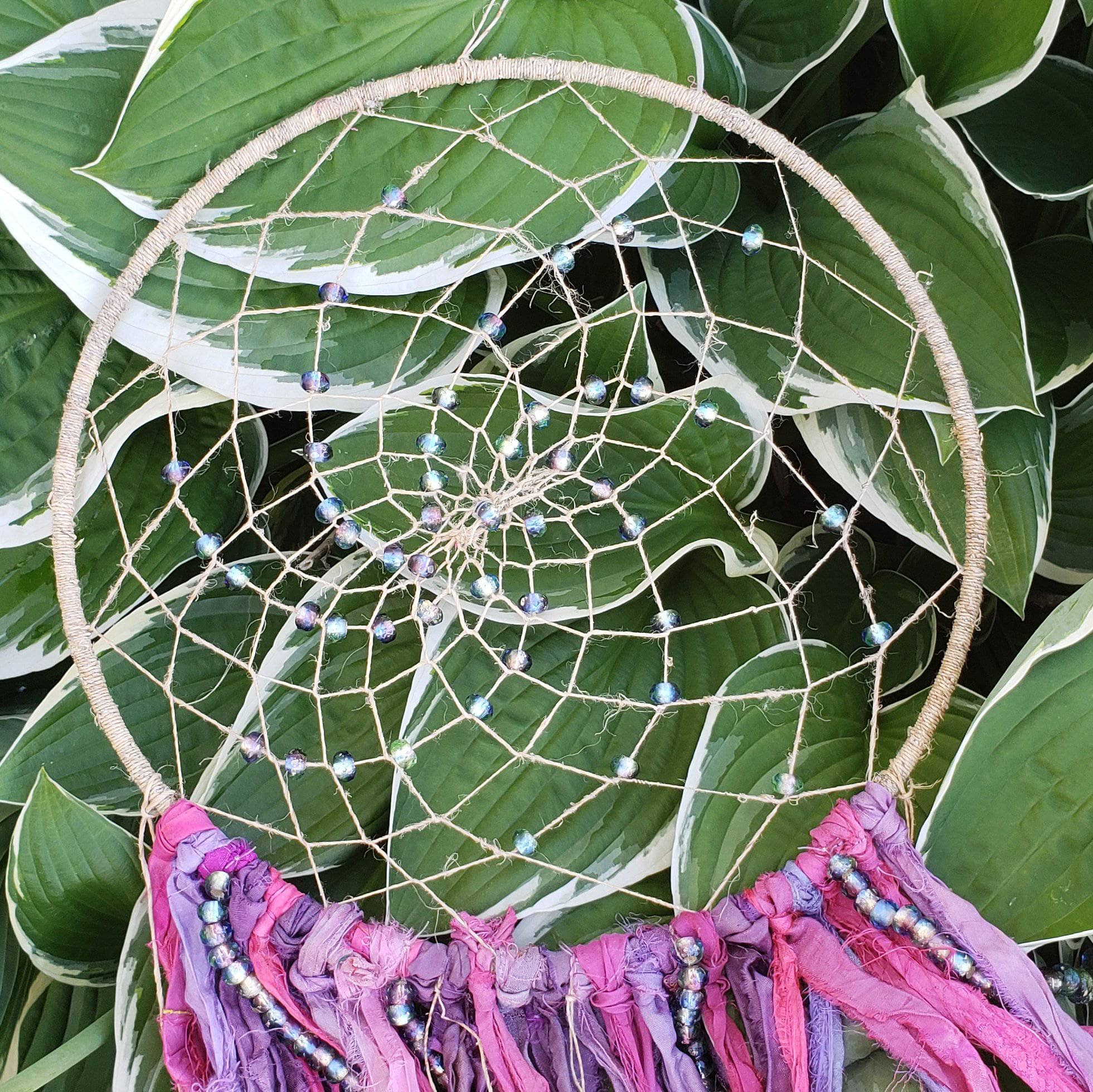 Relax and have fun with this DIY dreamcatcher! Our kit to make your own dreamcatcher includes Single Ply Hemp Yarn and a sample card of Sari Silk Ribbon. Don't let the decorating stop there, you can add as little or as many beads, stones, fibers, feathers as you want.