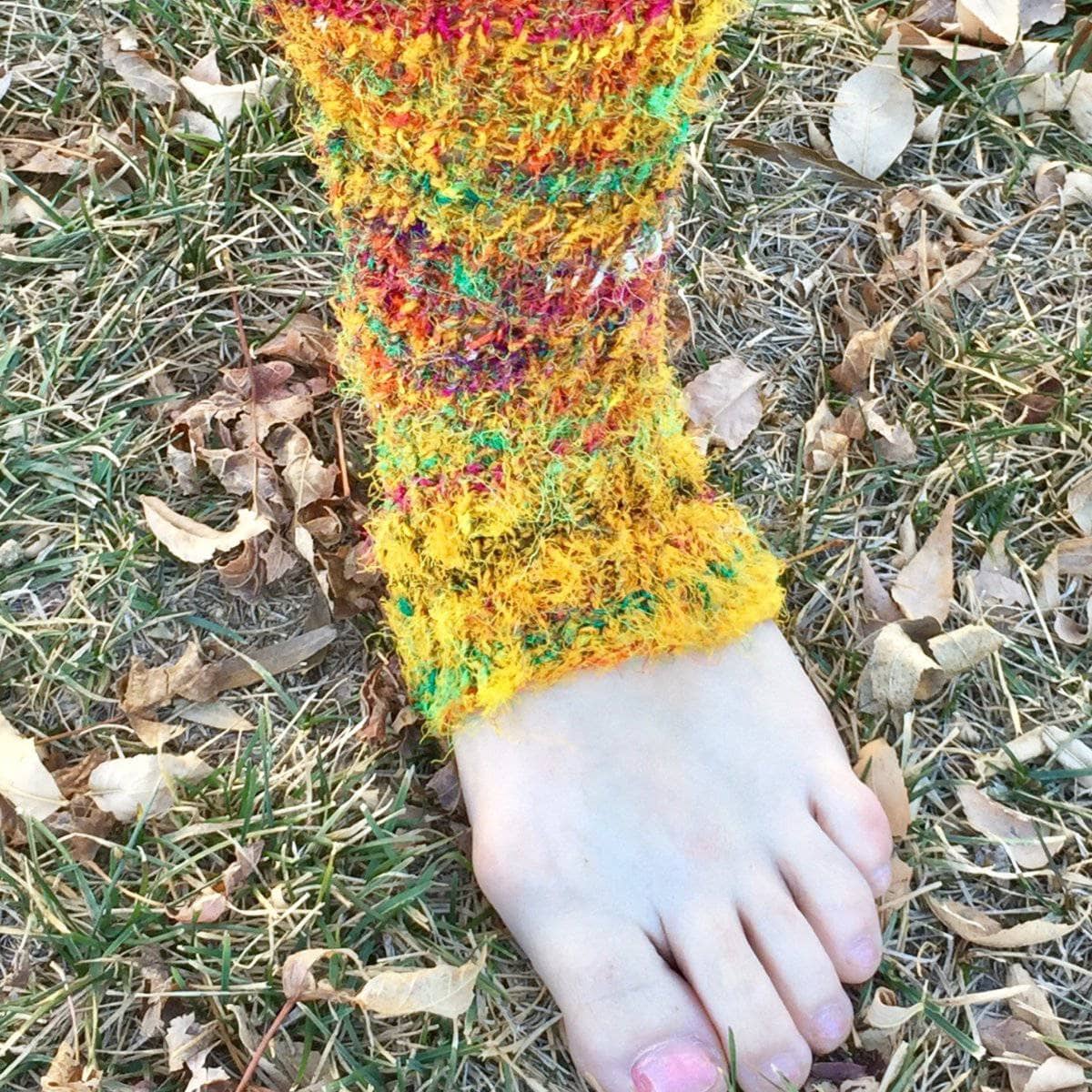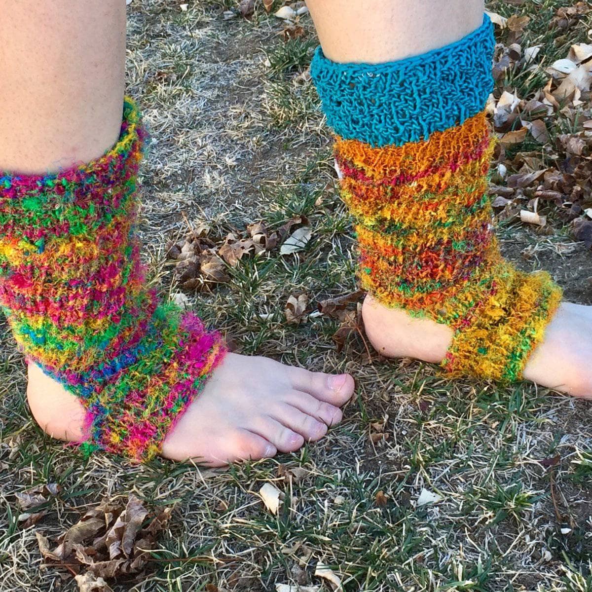 These flashy yoga socks will make all of your yoga friends jelly. This knitting kit includes our Spice Market Recycled Silk Yarn & is perfect for beginners!