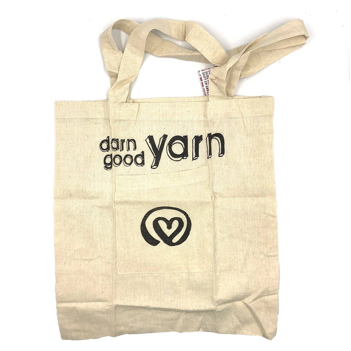 Our canvas tote bags are made of 100% cotton, and are a great eco-friendly way to show how you Start At Love. Here at Darn Good Yarn, we believe that every action should start from the heart.