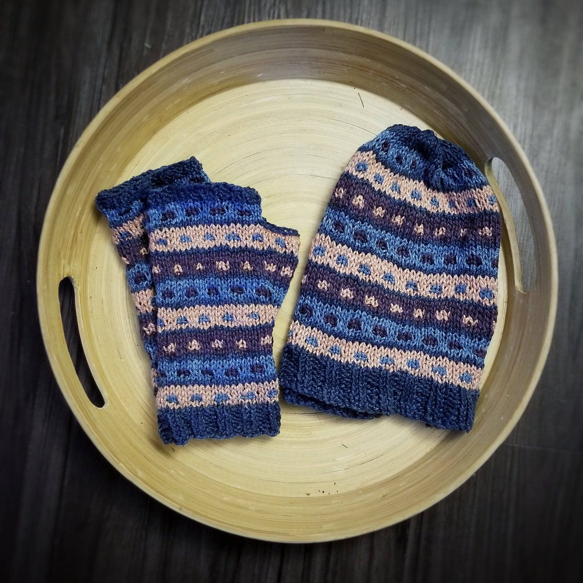 The Stripe-A-Dots Hat and Gloves Knitting Pattern makes a beautiful matching set of fingerless gloves and a winter beanie, perfect for staying warm or gifting to a friend. The pattern includes intermediate-level instructions that will stretch your knowledge of colorwork, shaping, and unique stitch patterns.