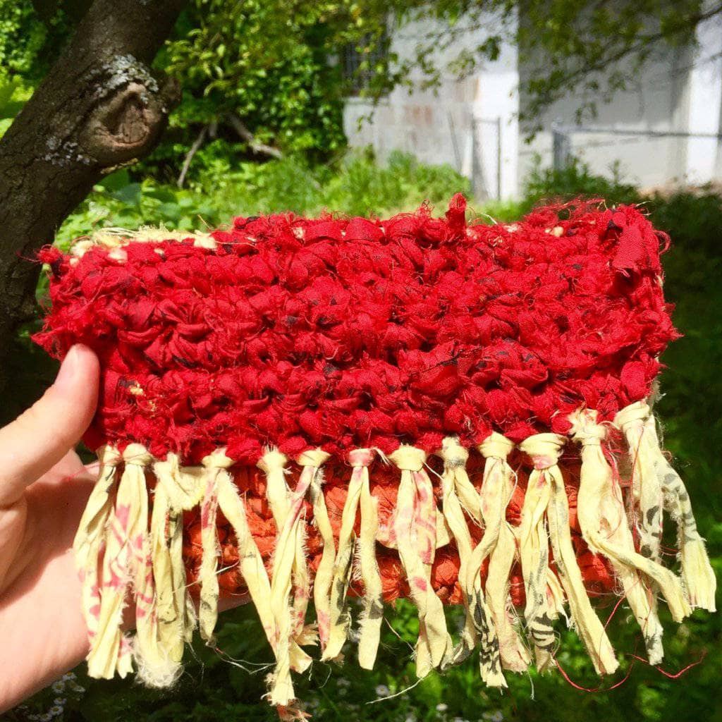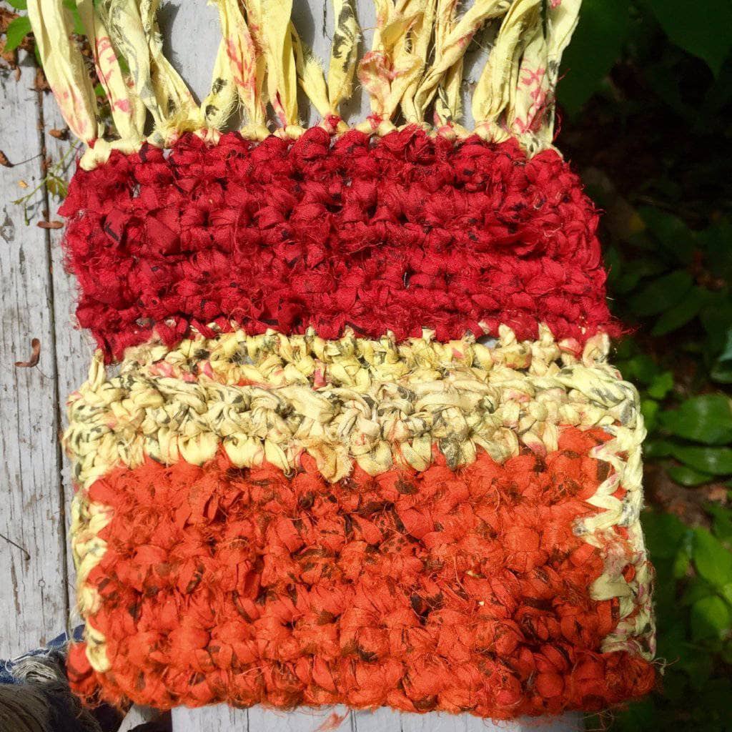 This clutch works up super quickly! The chunky stitches, silky yarn, and fringe edge make it a great summer bag. You can try adding a chain (maybe from an old handbag or from a craft store), a pom pom, or a tassel, and connecting it to the sides of the fold. Each kit comes with 3 balls of Washi Ribbon and a pattern download!