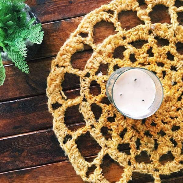 Brighten up your living space with a few chains, slip stitches, double and treble crochets! This vibrant, textured mat is made with our 100% Recycled Banana Fiber Yarn, a fun, plant based fiber. Each kit comes with 4 skeins of yarn and a pattern.