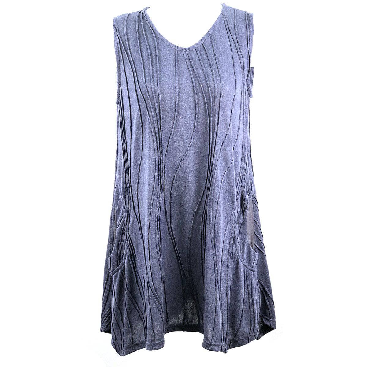 These Textured Viscose V Neck Tunic Tank Top are light and flowy. Each is 100% Viscose and features a textured wavy weave pattern. Great for summer wear.