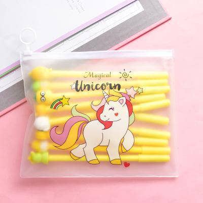 We all need a little whimsy. Let's add some freakin' unicorns to the mundane! Each 10 pack of gel ink pens comes with an assortment of fun characters in a PVC case to keep your little buddies safe.