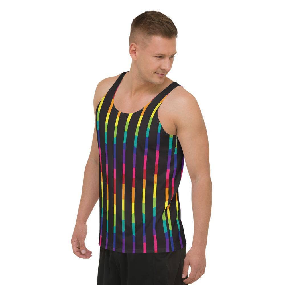 This black rainbow tank top has everything you could possibly need – vibrant colors, soft material and a relaxed fit that will make you look fabulous!