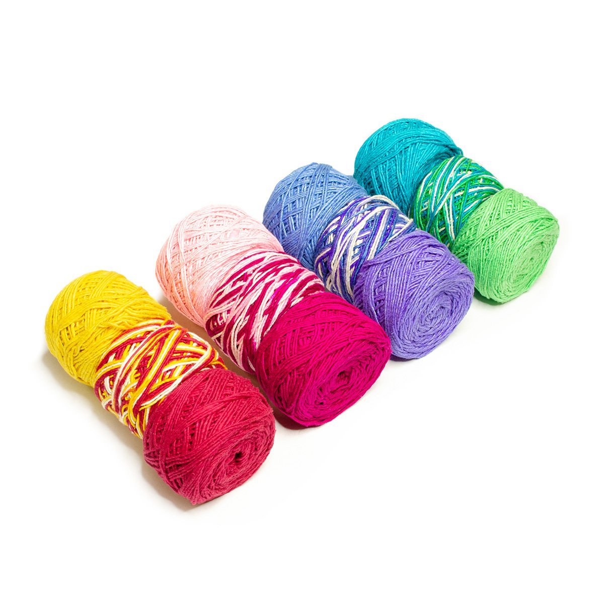 This pack comes with 12, 50g/75 yard cakes of our popular Worsted Weight Silk Roving. The colors range from beautiful baby blues to hot pinks, to variegated combinations. Worsted weight yarn is extremely versatile and can be crafted into so many fun, beautiful projects. Like all of our yarn, our worsted weight is hand-dyed by our extremely talented artisans in India. These men and women take their time handcrafting this yarn, bringing a little piece of India to each skein.
