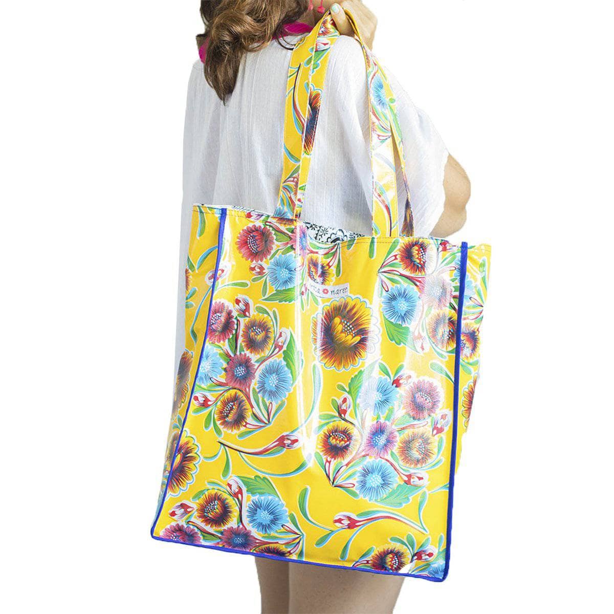 These Vintage Mexican Oilcloth Beach Bags are made from heavy oilcloth with a Mexican vintage print. The heavy oilcloth makes these bags very durable and perfect for carrying your items to the beach and keeping them dry!